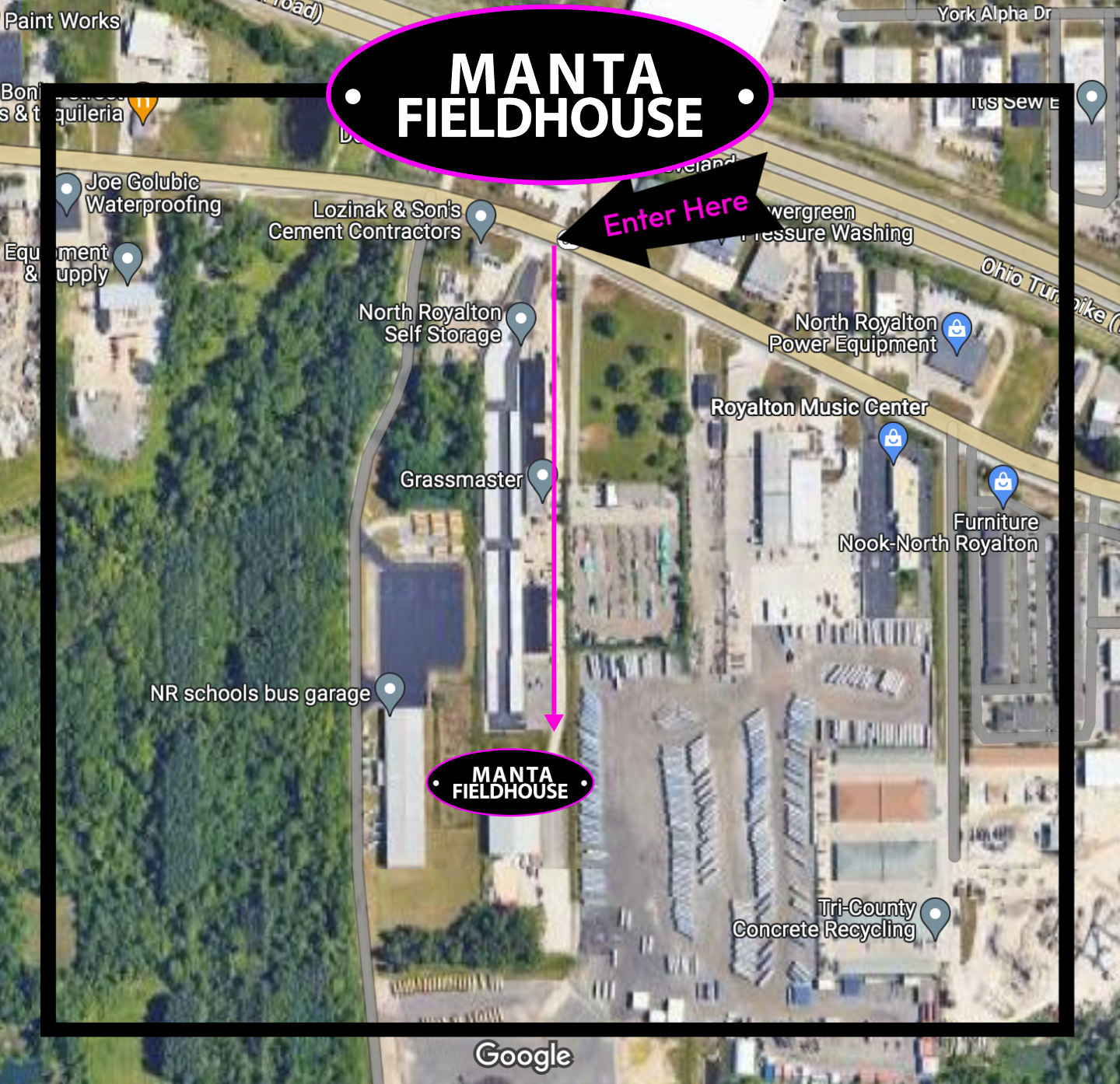 Manta United owns and operates the Manta Fieldhouse in North Royalton, OH. This is a newly renovated facility which includes a field turfed playing area of 60×30 yards, with a 30 foot ceiling and full netting protection surrounding the playing area. The Main Field is an ideal area for baseball, softball, football, soccer, lacrosse, rugby, and similar sports. Additionally, the Main Field can be split by nets into 3 separate fields approximately 7,500 sq feet each.